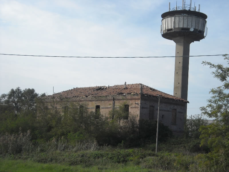 Ex-casello nei pressi del Canal Bianco ad Adria: il ponte ferroviario sulla strada è stato demolito (E. Martino, 2013)