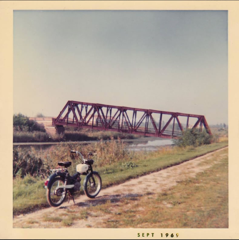 Ponte in ferro sul Canal Bianco ad Adria nel 1969, danneggiato durante la Seconda Guerra Mondiale (archivio U. Mosca)