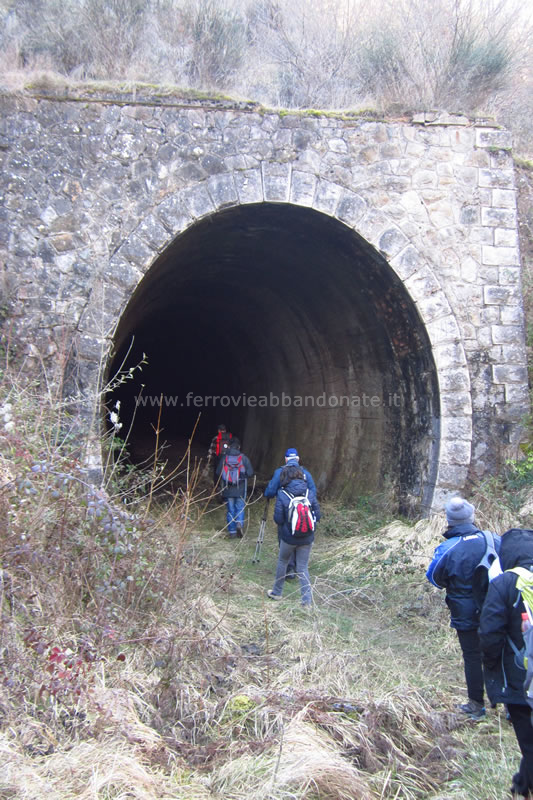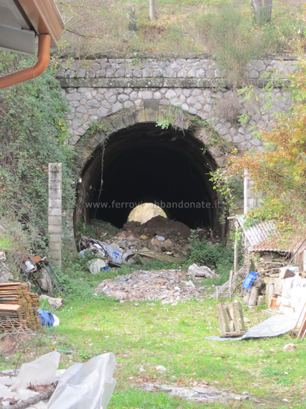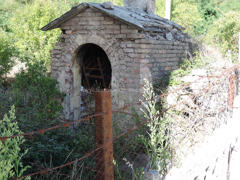 Imbocco di una lunga galleria tra Tempa Cappitelli e Cappuccini, con vicino casello di guardia (A. Stigliani, 2018)