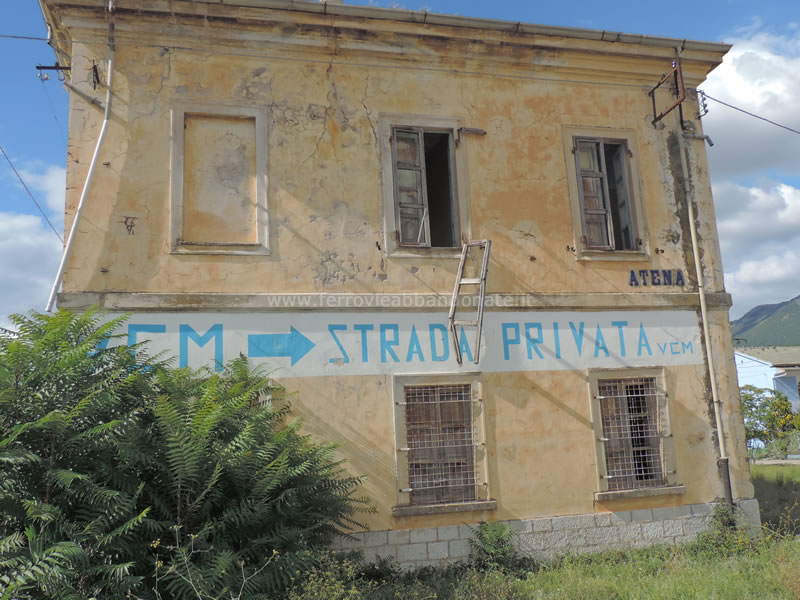 Fabbricato viaggiatori della ex-stazione di Atena (FCL), di fronte alla stazione di Atena (FS) (A. Stigliani, 2016)