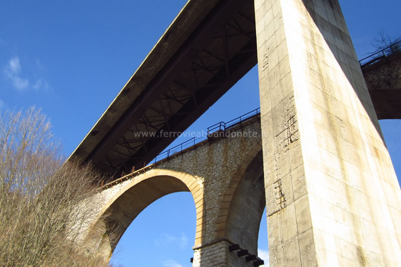 Altra immagine del viadotto Velasio, nei pressi di Brienza, dove il tracciato faceva un'elicoidale, passando prima sotto e poi sopra il viadotto (A. Stigliani, 2016)