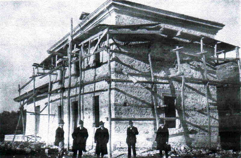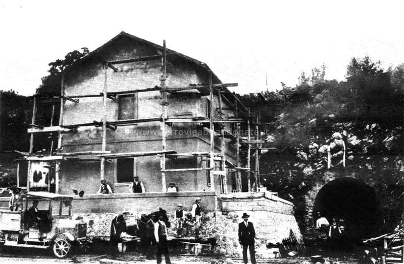 Immagine storica della stazione di Atena Lucana durante i lavori di edificazione (archivio S. Sechi)
