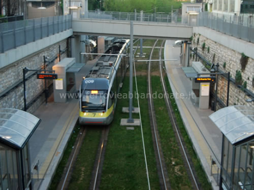 Fermata di Borgo Palazzo della tranvia Bergamo-Albino, costruita sulla preesistente sede della ferrovia della Val Seriana e della Val Brembana (E. Ruggeri, 2011)