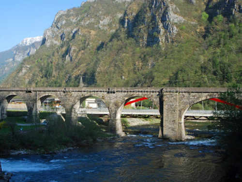 Ponte della ex-ferrovia alla stretta di Sedrina, che correva sotto un vecchio ponte stradale (A. Marcarini, 2009)
