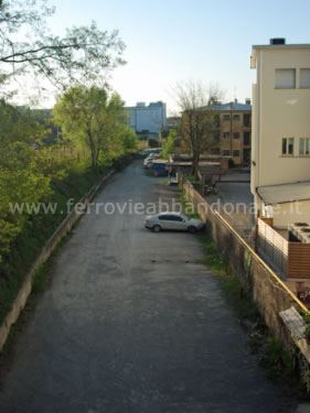 Ex-sedime utilizzato come parcheggio nell'area urbana di Bergamo (all'incrocio con viale Giulio Cesare), tra le fermate di Borgo Santa Caterina e Valtesse (E. Ruggeri, 2011)