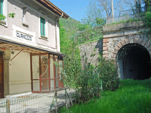 Ex-stazione di Clanezzo e imbocco dell'omonima galleria (E. Ruggeri, 2011)