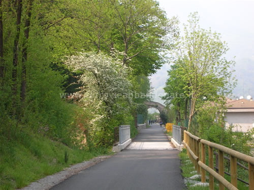 Lungo rettilineo del percorso ciclabile realizzato sulla ex-ferrovia nell'abitato di San Giovanni Bianco (R. Rovelli, 2007)