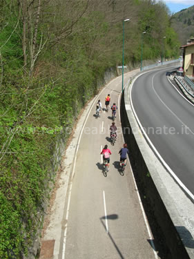 Pista ciclabile realizzata sull'ex-sedime tra S. Giovanni Bianco e Camerata Cornello accanto alla strada statale (E. Botta, 2009)
