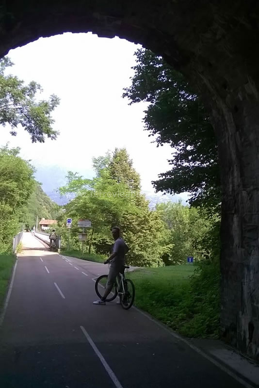 Viadotto e galleria lungo il percorso ciclopedonale realizzato sull'ex-sedime tra S. Pellegrino Terme e S. Giovanni Bianco (R. Russo, 2015)