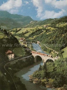 Treno passaggeri in transito sul viadotto di Lenna (archivio P. A. Marchese)