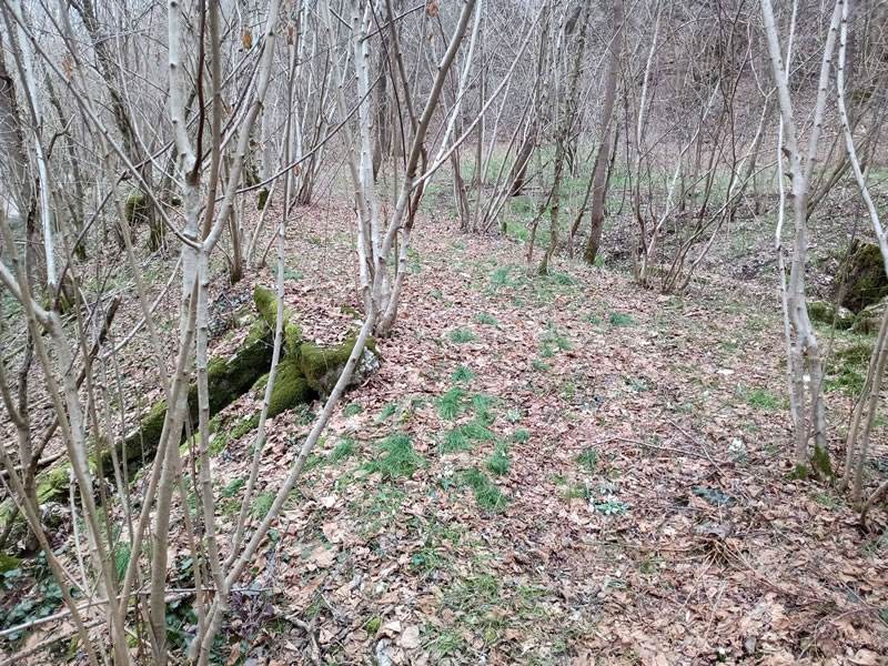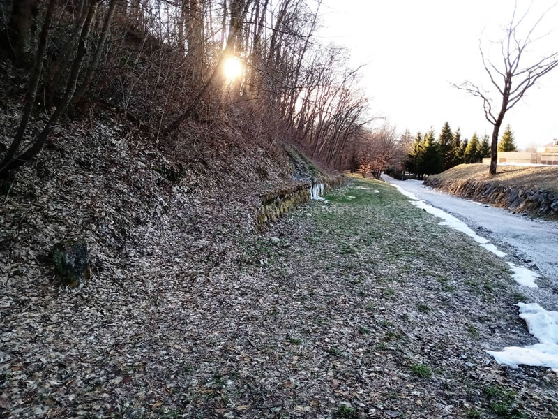 Ex-sedime, con i resti di un tombino, in località Levada a Sedico, tra le stazioni di Sedico-Landris e Roe (S. Dell'Osbel, 2021)
