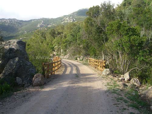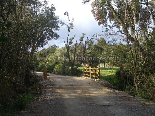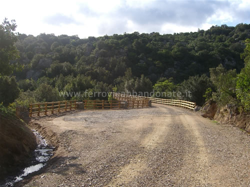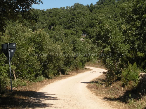 Imbocco del percorso ciclo-pedonale dopo un attraversamento della S.S 127, tra Calangianus e l'ex-fermata Rifornitore (E. Botta, 2010)
