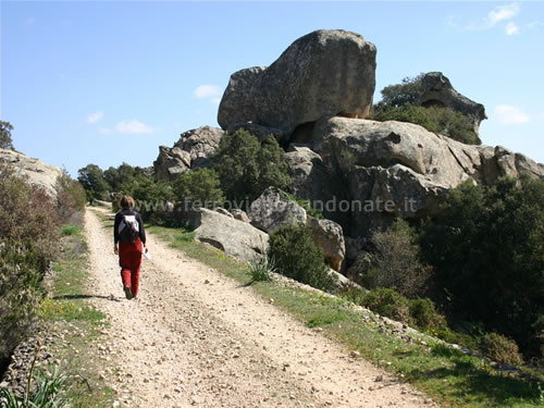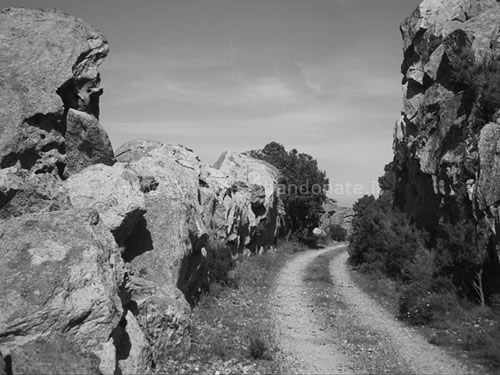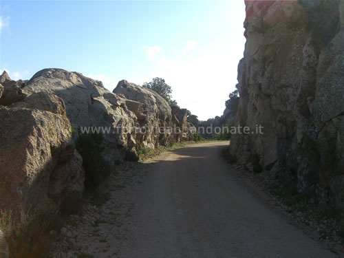 Tratto di ex-sedime tra imponenti rocce di granito (A. Marcarini, 2004)