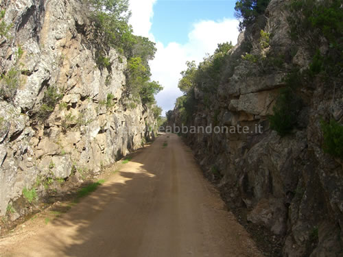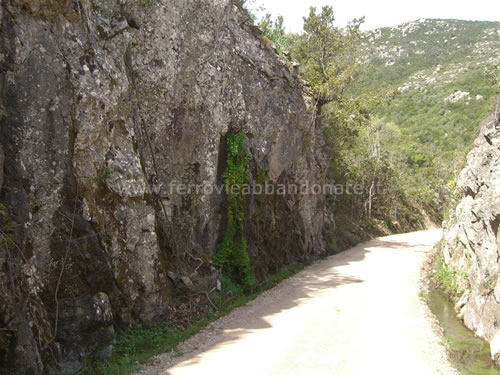 Tratto di ex-ferrovia scavato nella roccia, divenuto una strada campestre ben conservata (R. Barbieri, 2006)