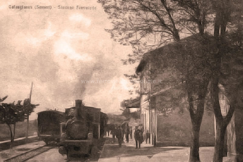 Cartolina d'epoca della stazione di Calangianus (SFS), oggi scomparsa (archivio S. Fiori)