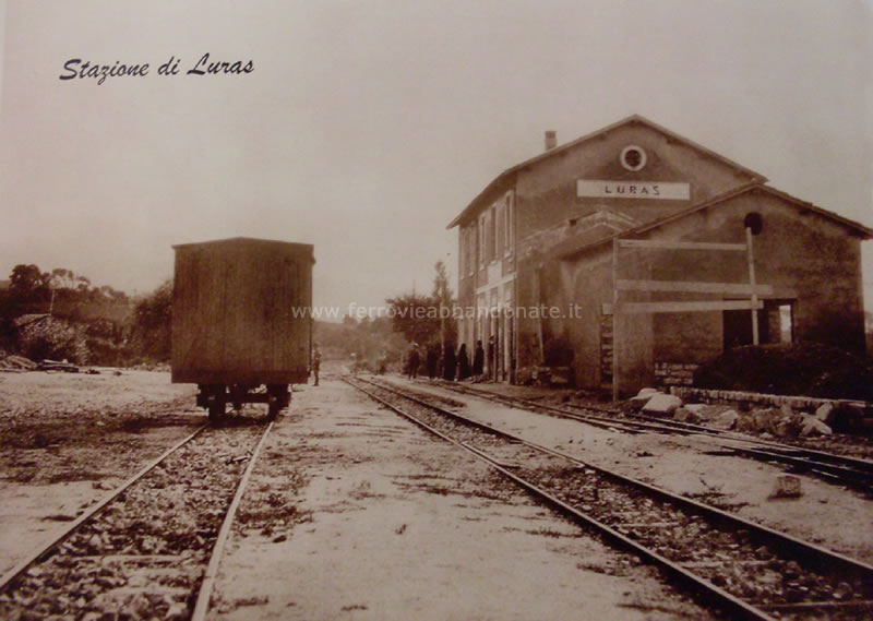 Vecchia cartolinea della stazione di Luras, dove la linea proveniente da Monti si univa alla Sassari - Palau Marina (archivio S. Fiori)