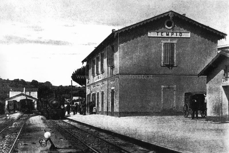 Immagine storica della prima stazione di Tempio, attivata nel 1888 quale capolinea della ferrovia Monti - Luras - Tempio (archivio S. Fiori)