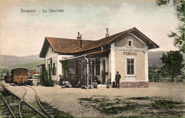 Stazione di Romeno in una cartolina d'epoca (archivio P. A. Marchese)